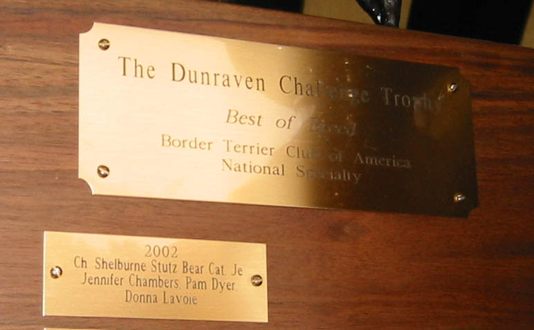 Tripper's Best of Breed trophy from 2002 - note he was the first name on a newly offered trophy