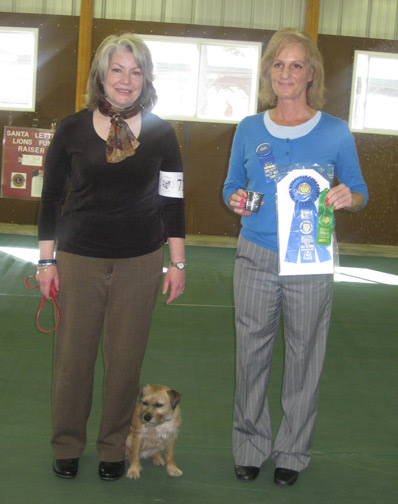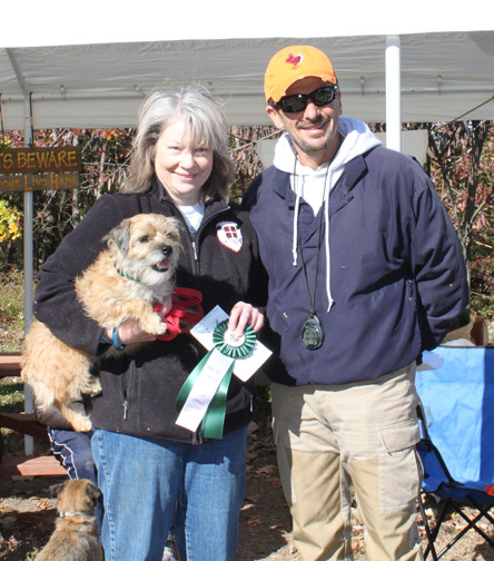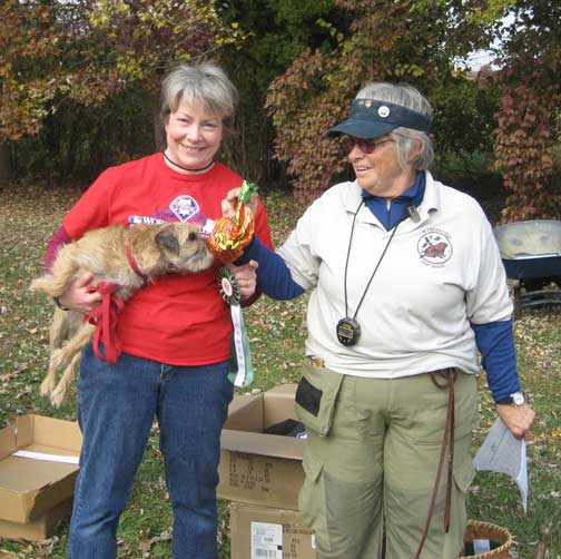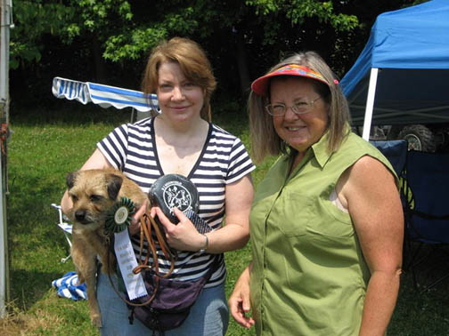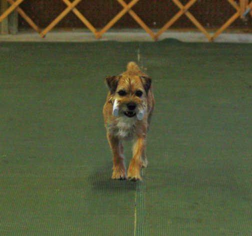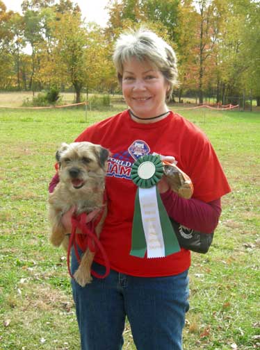 Thanks to intuitive guidance from breeder JoAnn and implicit trust from Kathy, Bindi was mentored through her recall problems into earning the first two legs towards her AKC Senior Earthdog title at the New Jersey Beanfield Earthdog Club and Northeast Border Terrier Club ED tests in Crosswicks NJ on June 2, 2007 and June 3, 2007 respectively. (Judges Jean Clark and Blue Sandrock).