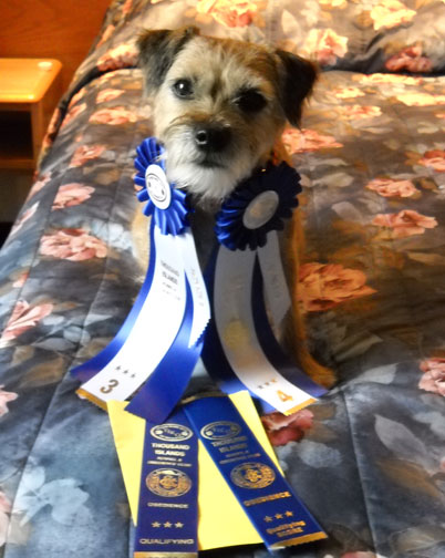 Turns out that in reading a 2007 issue of Front and Finish magazine, according to AKC scores, Bindi was listed as being 'ranked' as the # 3 Obedience Border Terrier to compete in Novice "A" in 2006!!