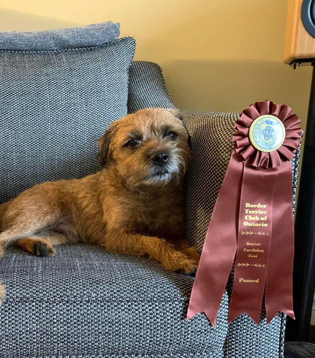 He topped this off by qualifying at the Border Terrier Club of Ontario and Border Terrier Canada Earthdogs Tests (handled by Anna) to earn his Canadian Junior Earthdog Title.