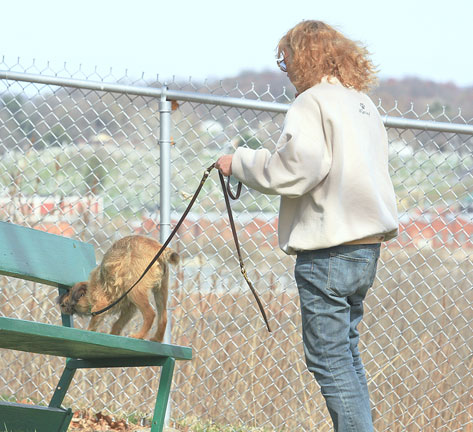 The third element was the vehicle search. Fells wanted to go down the hill and check out what was down there, but Donna refocused kim on the cars and once he remembered what he was supposed to do, quickly found the odor behind the hub cap of a tire. (37.31 seconds -- he was allowed three minutes). No pronounced on this one, instead he got "a little distracted".