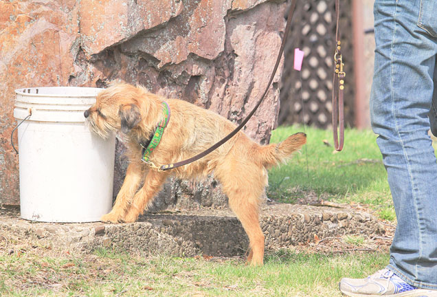 After a few hours it was our turn to do the morning tests. We went to the warm up boxes and Fells walked right by the odor box, ignoring it, checked every other box out there and then finally decided to mark the box with the odor, the first one he had originally encountered. Was this a good or a bad omen? We hiked and hiked and hiked and I encouraged Fells to eliminate anything that might be in him. Of course Fells was too excited to do anything.