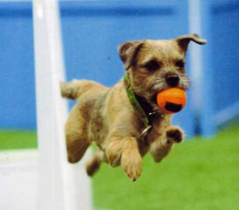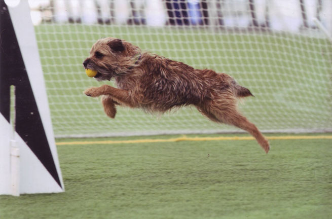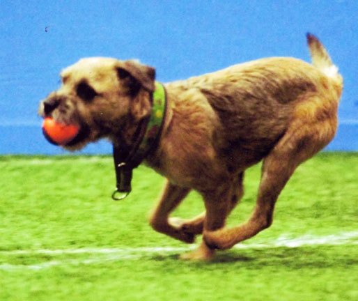On July 8th, 2012, Fells earned his FDCH-S (Flyball Dog Champion - Silver 1000 points) title running on a team with just three Border Collies and himself.