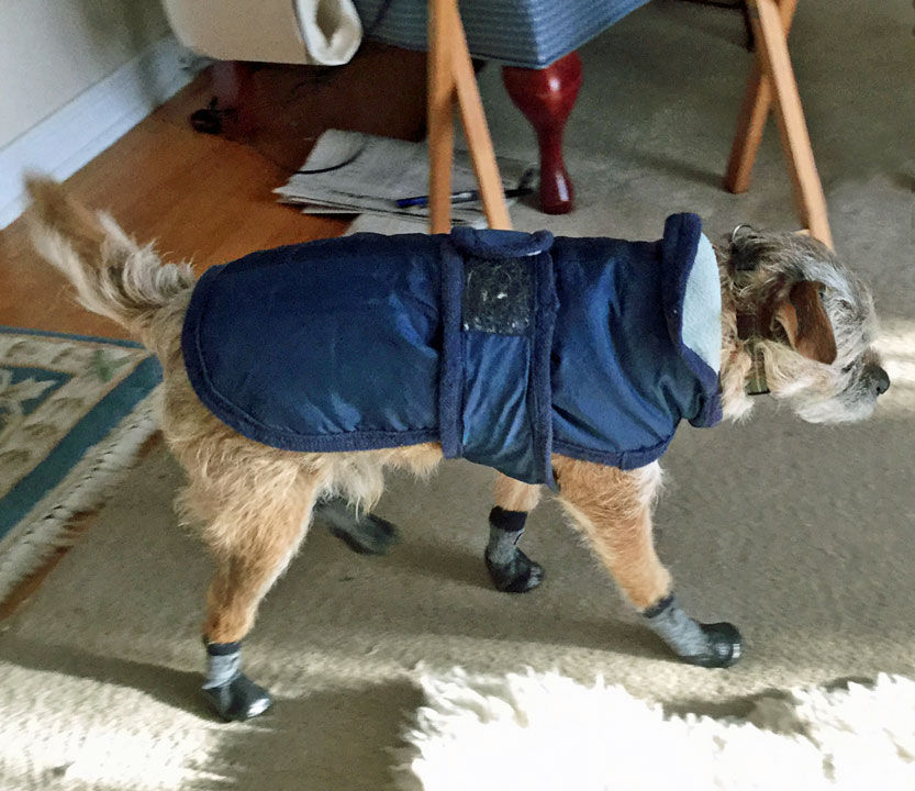 Logan on vacation chez Jansim while his "mom" takes a well earned holiday in the sun said "goodbye" to his winter coat.