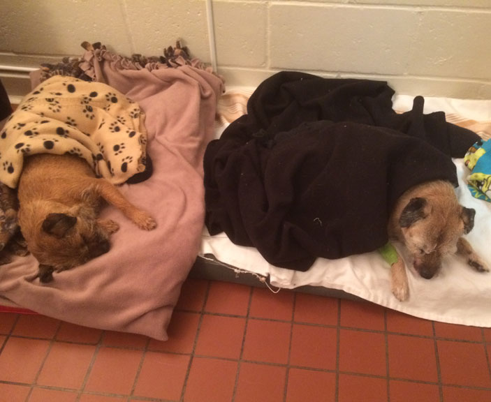 Tank was spayed and Boomer had some lumps and bumps removed. They were both done the same day and in recovery was the first (and likely last) time they have been able to share the same space without trying to take each other out since 2010!