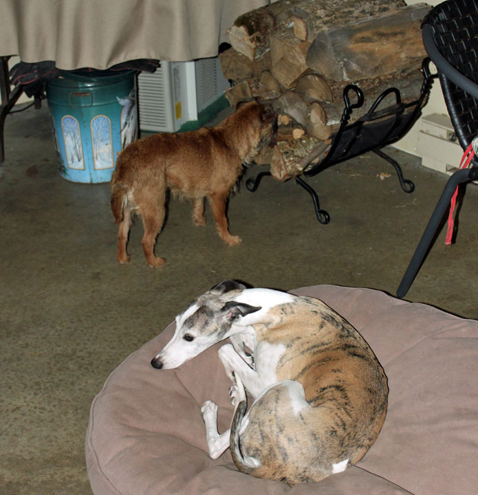 Tank is convinced that a mouse might have come in with the logs, Robyn not so much!