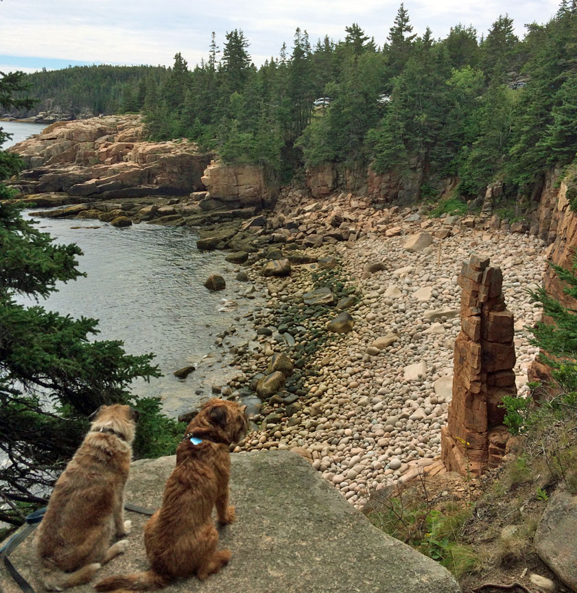 Boomer and Digger taking in the sights and sea air in Acadia National Park, ME