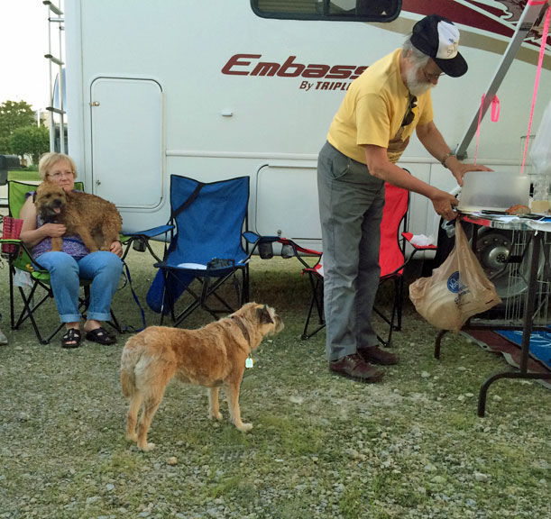 Tank, ever the opportunist, packed her travel bag and headed off to join Mark and Michele. Rumour has is their "much bigger than ours" fifthwheel, a new boat, and no more musical dogs were the icing on the cake