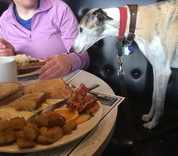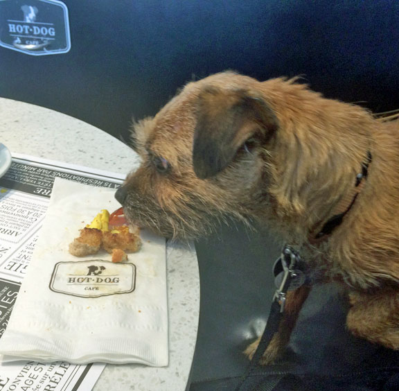 Lisa and I took Robyn for a slightly belated birthday breakfast at the Hot Dog Cafe. Robyn's table manners are definitely not up to Tank and Boomer's standards.I