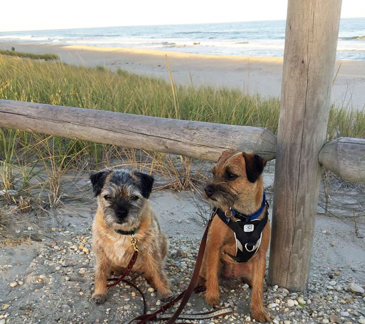 Midge and Abbey enjoying their shore vacation. Though it looks a tad chilly to contemplate a dip in the ocean.