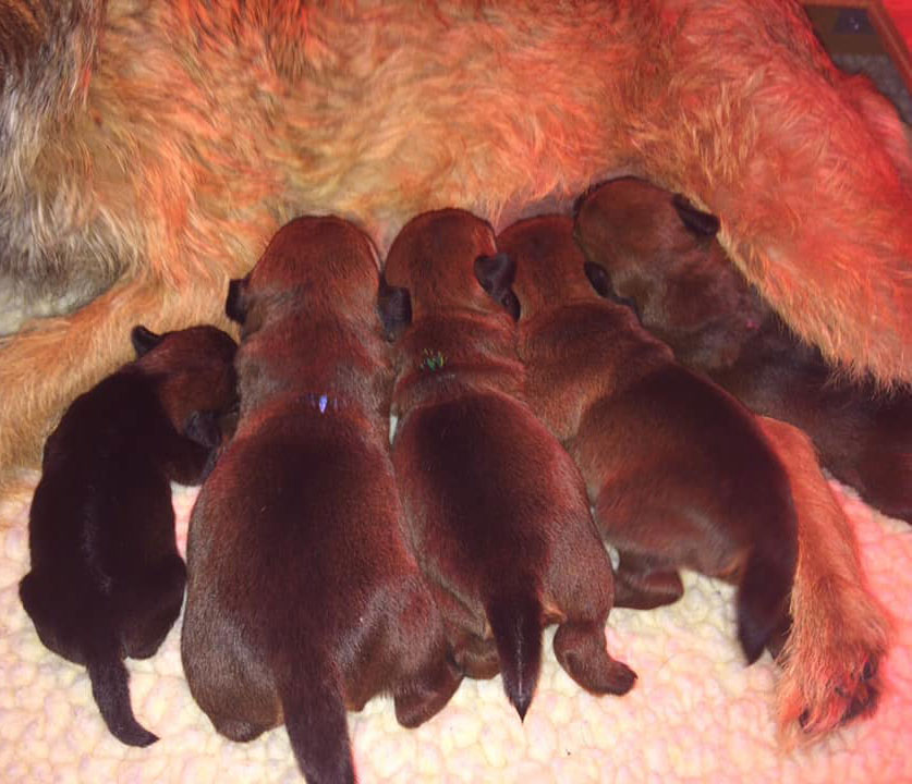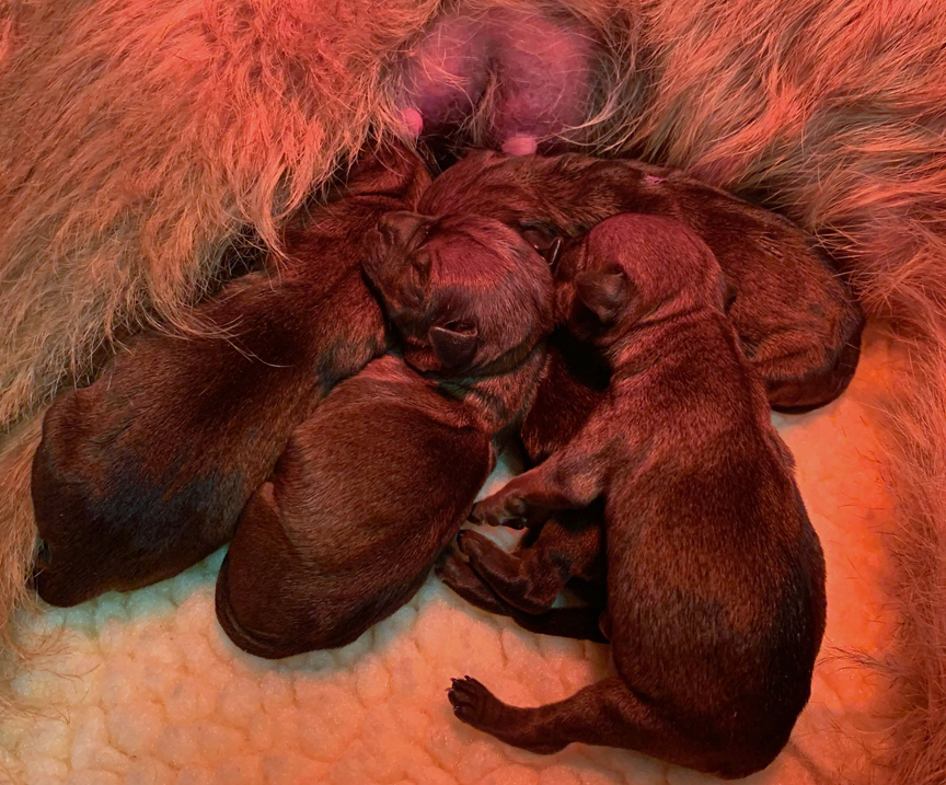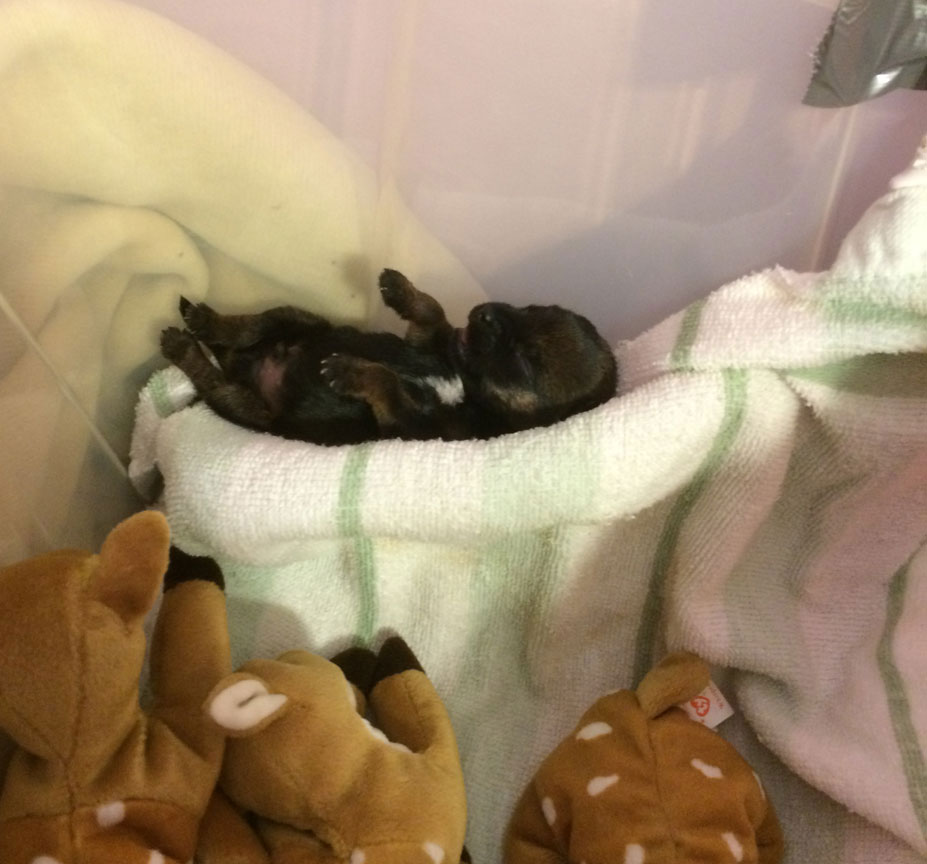 So December started with an all out effort to save the little male pup in the Felek - Lola litter. Tube feeding was the only option. After a couple of days keeping him with mom and sibs and tubing him every two hours it became obvious he was burning more calories than I could get into him. So, he came home with me and settled into a make shift incubator and Anna was able to focus on Lola, whose appetite was iffy, and the girls. We quickly named the little boy "Tucker". He sure liked his tucker and once full, was quickly tuckered out. Initially, I continued to take Tucker to spend a couple of hours with his mom and sisters each day but that was still too much demand on his calorie intake so, instead of Tucker going back and forth, I take his fake sibs whenever I go to Anna's to keep the scent. If he makes it to the point where his sisters are interacting, he will go for daily play dates. Almost two weeks in and things were going well until I followed recommendations and tried to increase the nutritional value of the milk substitute. It was too much for his little digestive system and resulted in a major set back in his poops and weight gain. At two weeks he still had not doubled his birth weight and still weighed less than my average pup at birth. Veronika had named two of the girls Peanut and Pickle so we decided on P names for the girls and stay with Tucker for the boy. Tucker had a play date with his sisters when he turned three weeks, the size difference remains startling. Unfortunately, he suffered a major set back in the days following.