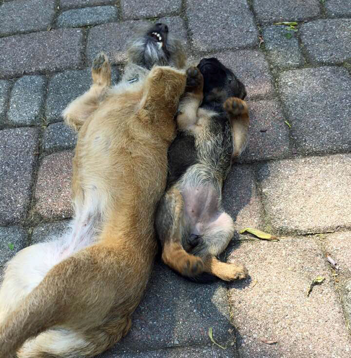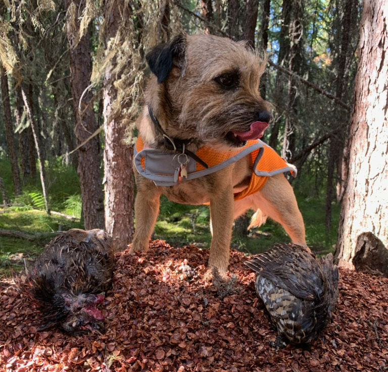 In September I continued outdoor agility classes with Digger, to say it was a challenge is an understatement. His nose knew where the chipmunks were coming and going and week after week he could not resist a hopeful check of the veggie plot. We tried once more running in AAC trials but again, the ring surrounded by prime hunting land was too much for his terrier mind and we only managed one Q (thanks to the judge decing that a "diversion" was due to the photographers shutter sound not Digger's terrier instincts leading to a refusal. But, he did have fun and was one happy dog, that is what really counts. Felek and Lola attended a Barn Hunt Trial in the middle of the month, this was only Felek's second attempt at this sport and he knocked off his Novice Barn Hunt title in fine style. Lola, without any previous exposure, earned her Barn Hunt Instinct Title Jo Ann and Steve said a fond farewell to their old motor home and welcomed a much newer vacation home on wheels, here's to some amazing adventures. Tony, Beth and Loki made good use of their Motorhome with some weekend trips. Loki also continued her grouse flushing career with great success. Birthdays in September, well!! Unbelievably the Scrapper Tank kids; Loki, Digger, Keltic and Abbey, all became veterans turning seven on September 1st. |