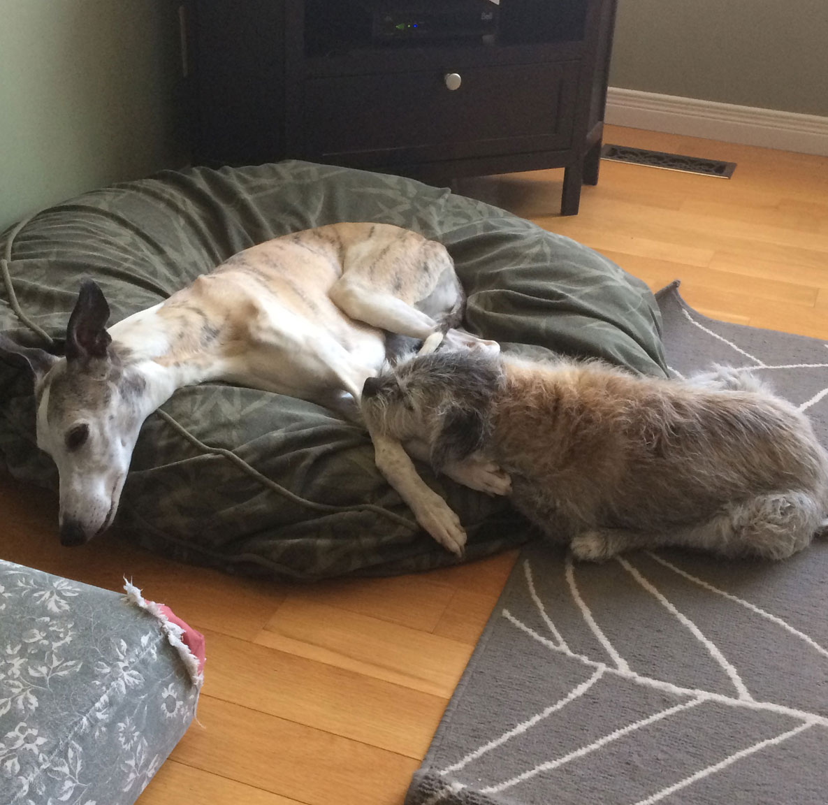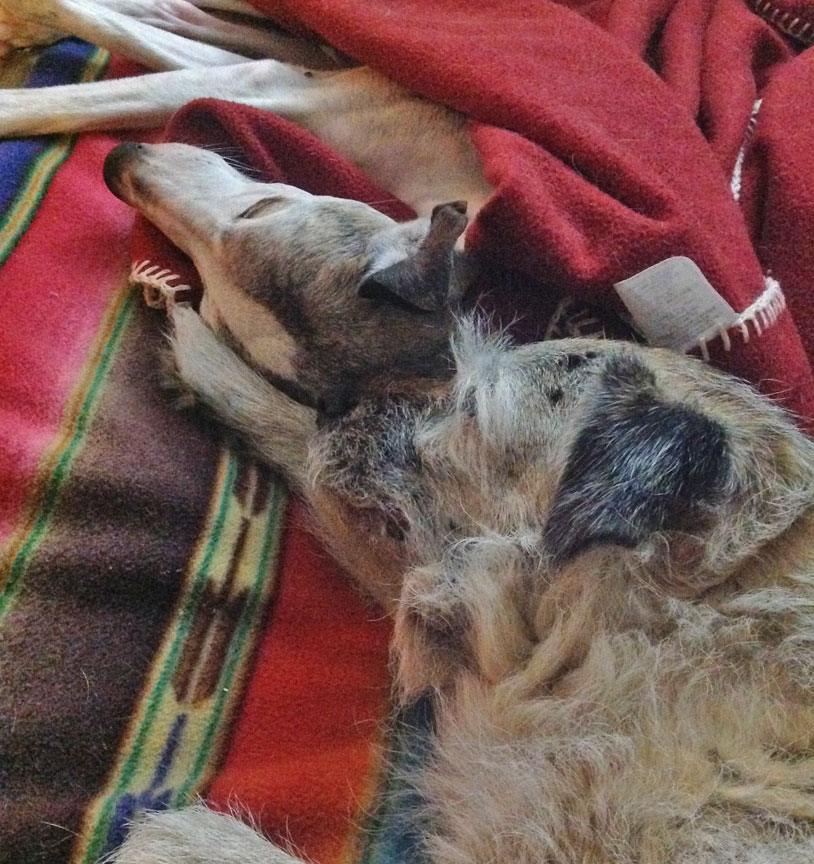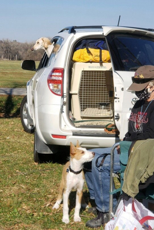 Although some of the "oldies" are struggling, it was nice to get through January without any losses and instead focus on celebrating the birthdays! Also cause for celebration in January was the successful coursing debut of Jo Ann's Saluki, Cotton We all know that the "oldies" can be pretty heavy maintenance and, at 17 years 9 months, Tinker is no exception, she is definitley a morning dog. So, she splits her time between Anna's home and ours. She enjoys hanging out with Boomie and we are a "morning family" which suits Tinker to a T | ||||