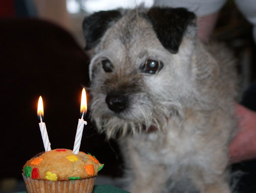 Happy 12th Birthday Gunter - and get your eyes off Jacque's chocolate croissant - the nice muffin is yours!!!