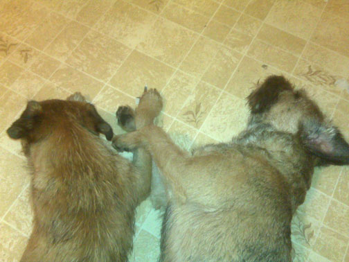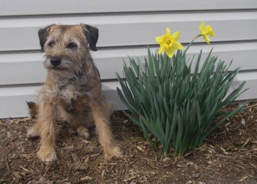 Bria, brother Hobey and Bumble posing (blinking in Hobey's case) in the spring sun