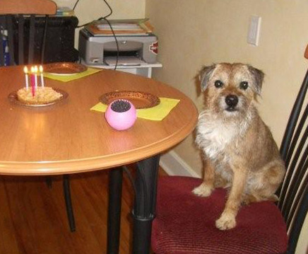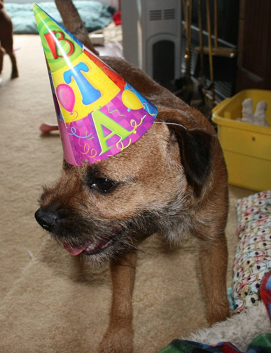 Gunter celebrates his thirteenth birthday with "bunny and broccoli"
