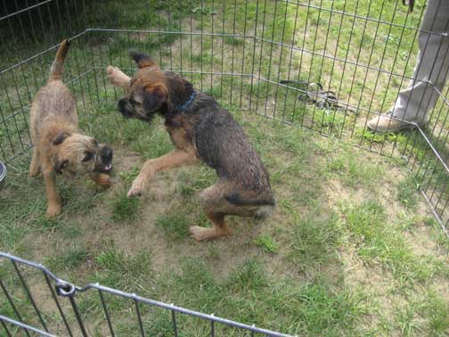 Geordie and Bramble in "sibling rivaly"