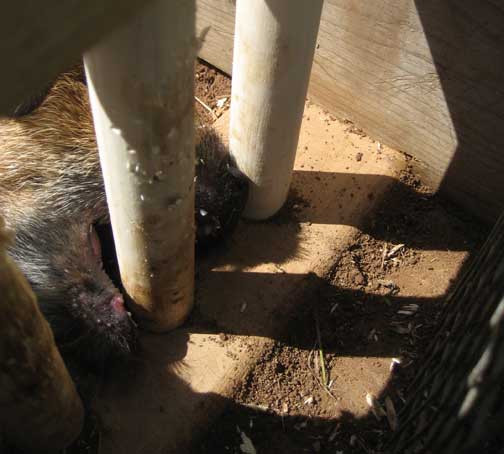 Zeke takes a cooling sand bath