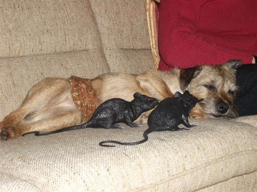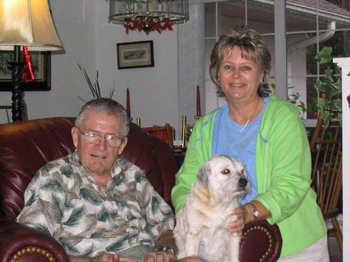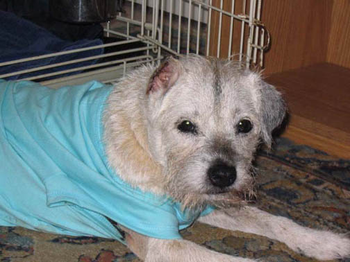 Nadine started the year undergoing surgery to remove several growths. Most of her right ear flap had to be removed and at 15-1/2 the surgery "set her back a bit". But owner dedication and terrier determination paid off. Hopefully Nadine will get too spend many more days soaking up the Florida sunshine with Donna and Paul.