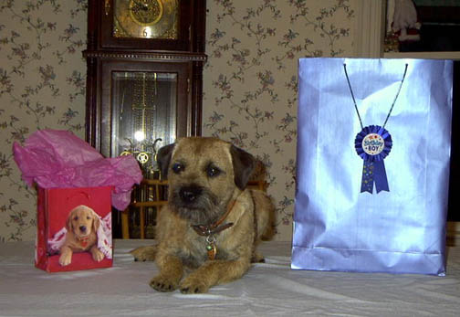 Pip patiently waiting for the right time to open his presents,