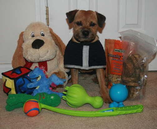 Touzie posing with a plethora of presents