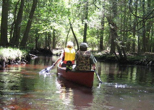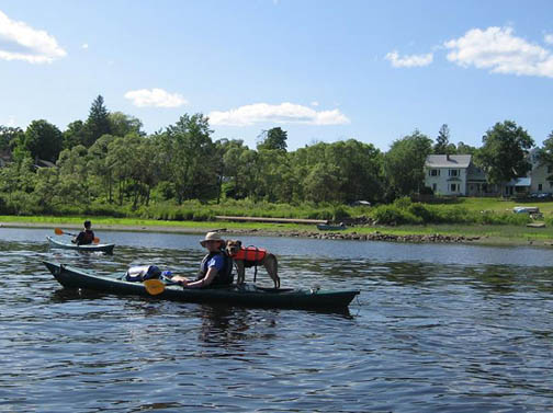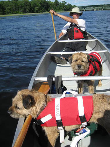 As pretty a picture as you could wish for. David, Lisa and Higgs paddling in Maine