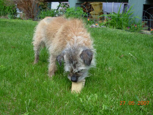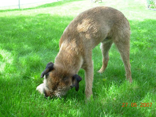 "...one to go" Gizzie fortifies herself in preparation for a trip to the "hair dresser".