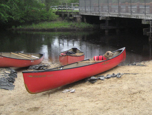 Gunter waits patiently at the start of Tuesday's canoe trip. Although not the best weather, we had an excellent paddle on the Wading River.