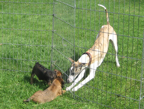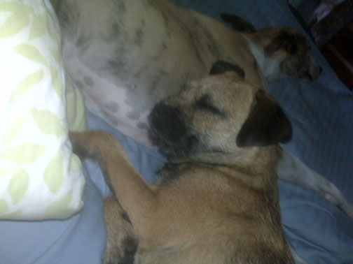 While Uncle Colin graciously pupsits the "travellin T's" - Tank and Twiggy