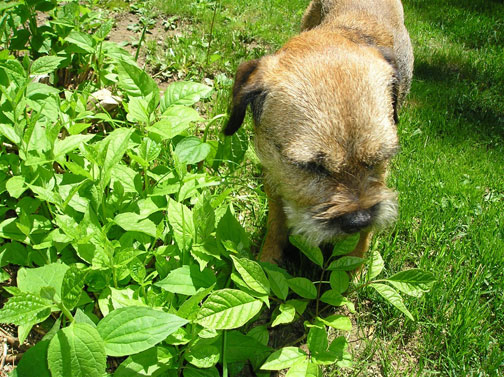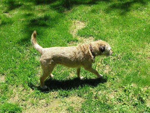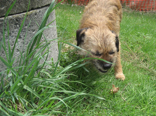 In Maine, Lizzie is on a mission - checking the lawn for moles.