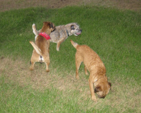 Tumnus, Ellie and Geordie take time out to play