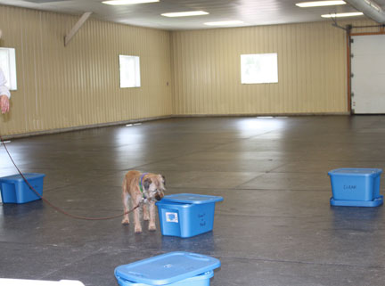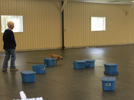Gunter, daughter and nephew take part in a nosework seminar.