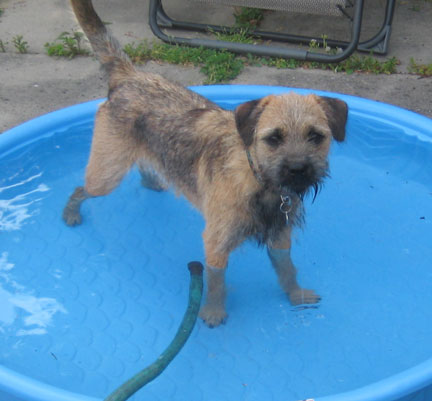 Finlay cools off in his wading pool - smart boy.