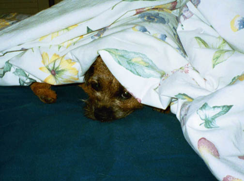Midge under the weather Duvet! Time to turn up the heat, Barb!