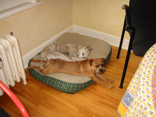 "Damn visitors - just move in and take over!!!" Nipper sharing Hazel's bed!!!