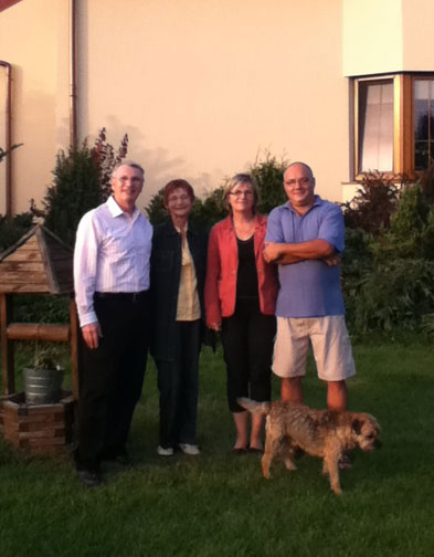 Jacques & Jocelyne visit with Benita and her husband and of course the Borders at their lovely home. That's Ernest sneeking into the photo.