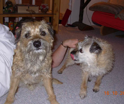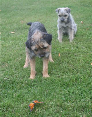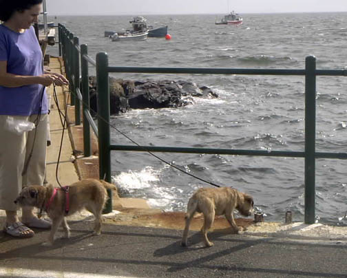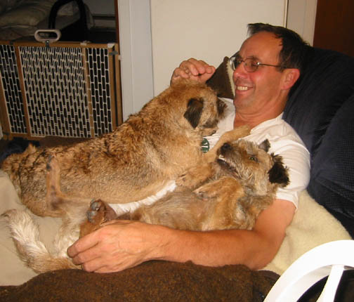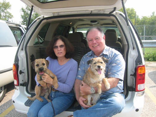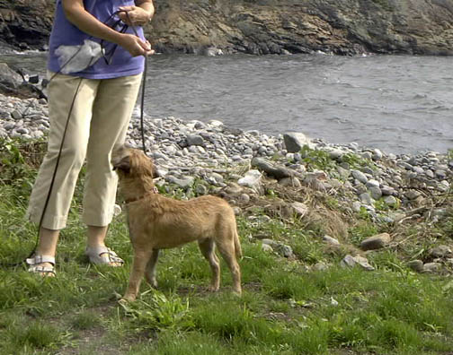 When Pip first met Mark Dougherty in NJ in May, the "chemistry" was obvious. It was no less apparent when Mark, Michele and BT Daisy came to visit in August. So, with a few months of "life experiences" under his pelt via dogs shows, ED tests and time with his dad, on September 16, 2006, Pip made the trip to Stowe VT, to say a brief "Hi" to breeder Jenny Chambers and his mom Daisy before heading off to Nahant, MA to start a new adventure with Mark, Michele and Daisy (now to be known as Daisy Sr. so as not to be confused with Pip's mom, Daisy Jr.)