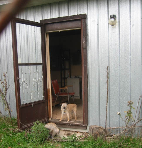 "No mice in here!" Danny checks out the old cabin on a weekend trip to "the land".