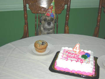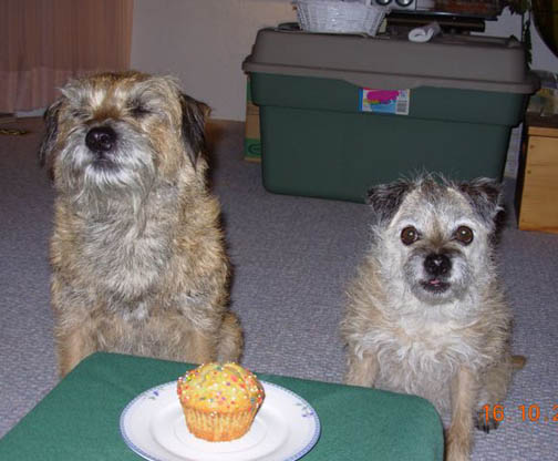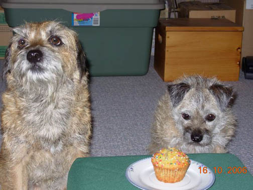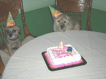"Wishful thinking" Sophie and Spunks eyeing the "human" cake.