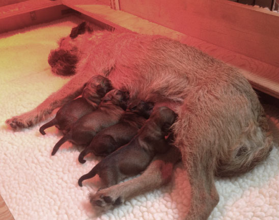 On September 1st 2013, Tank gave birth to four pups, two boys and two girls. Dad is Patrick and Camilla's lovely young boy, Scrapper