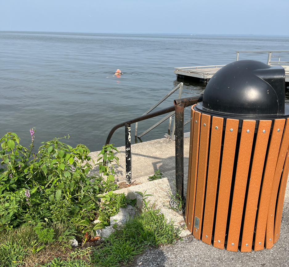 This Geocache was on the South Lancaster Wharf and yes that is a lady swimming in the lake.
