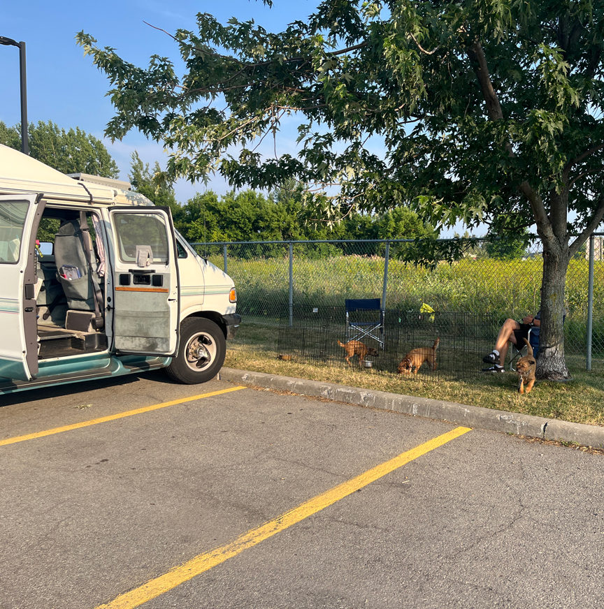 Friday of that week we left for Mississauga to help with the Meet The Breeds Booth at the Pet expo on Saturday. Dry camping at Bass pro Shops was not available so instead we opted for a camp ground right in Mississauga and just 15 minutes from the international Centre (location of the Pet Expo). Talk about a wonderful Oasis in an urban setting.