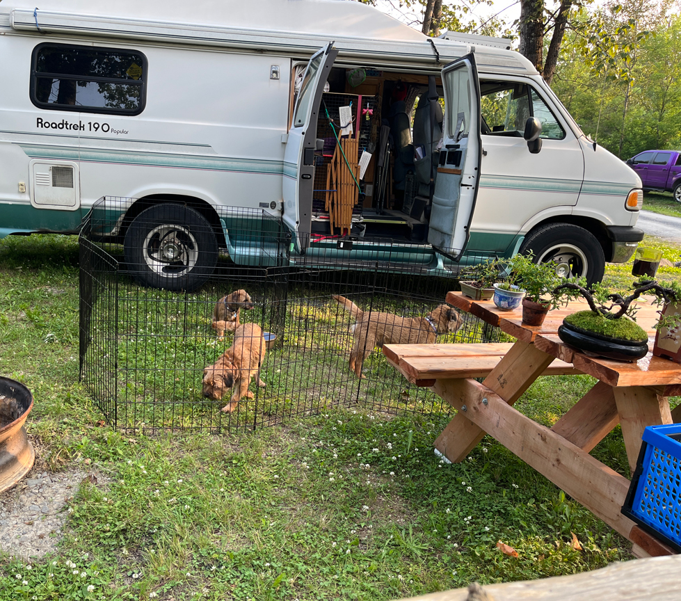 The Specialty trip was the Gherkins first trip in the camper and they ahndled it like pros. They remained quiet and content in their crates for long periods and played hard when they were given the chance. Such troopers and seasoned travellers.
