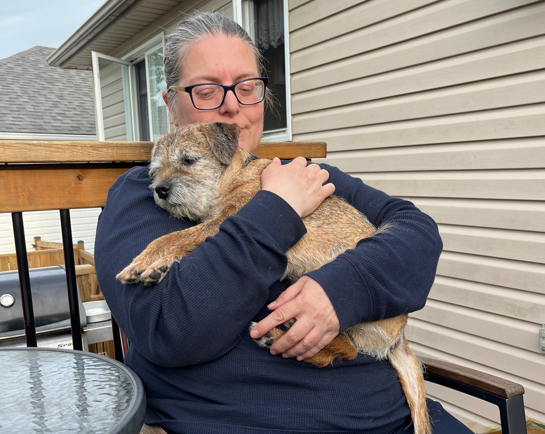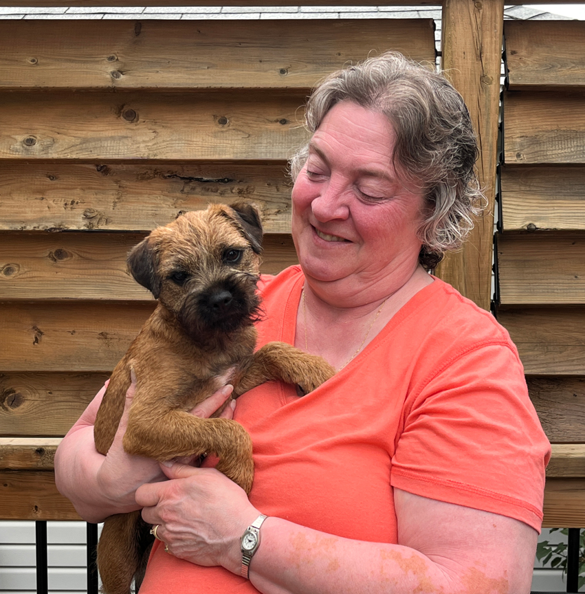 Scrapper cuddling with Shawna, he is a truly special boy and will always be welcome chez Dyer