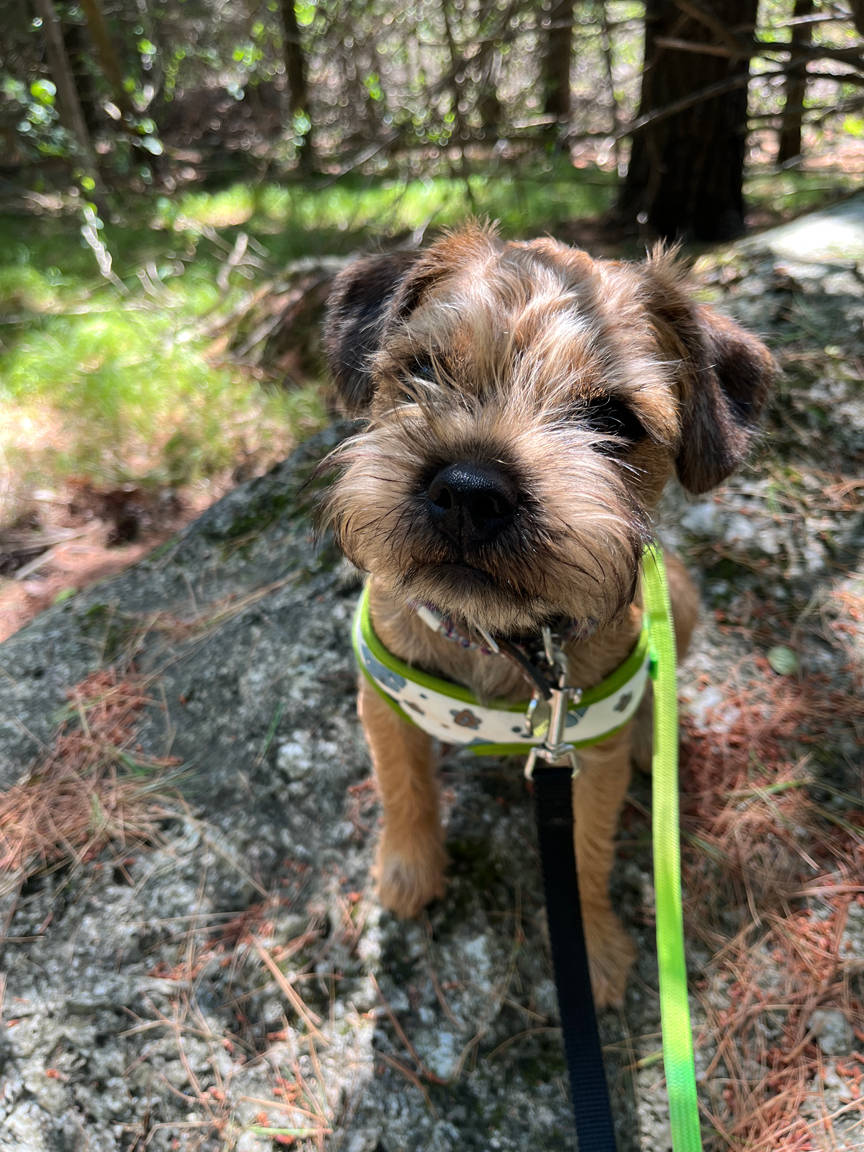 Molly joined us for a geocache on the K & P trail. Supposed to be near this rock - didn't find it but Molly looks cute.