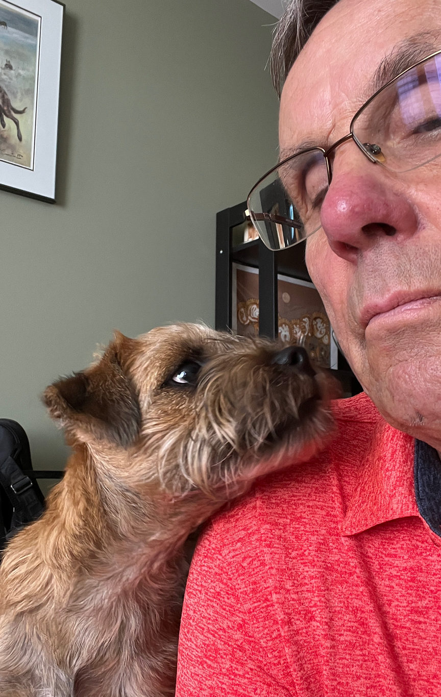 Wiggle butt Molly enjoying the view from Fred's lap.