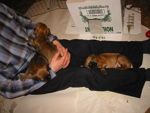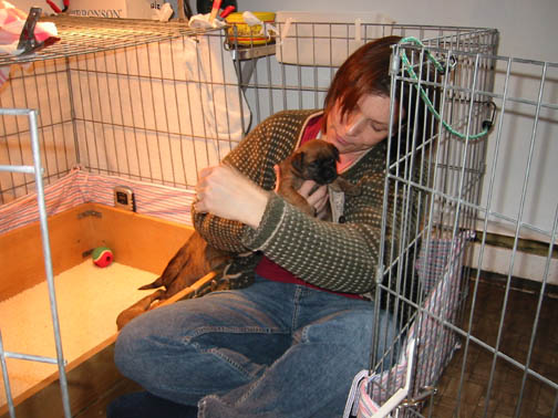 One on one - pup-a-lump one enjoys some "quality time" with Anna and Mom