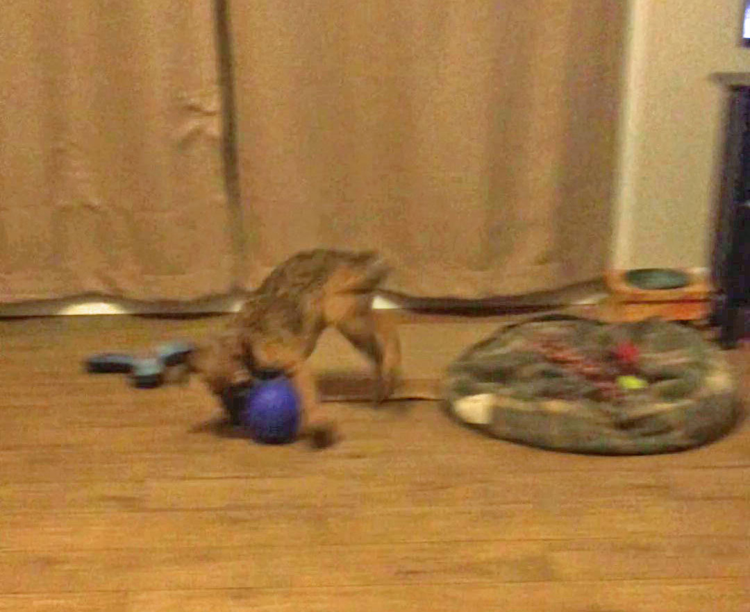 Tinky (now Ruby) knows how to amuse (and exercise) herself. Another fan of the "Jolly Ball" toy