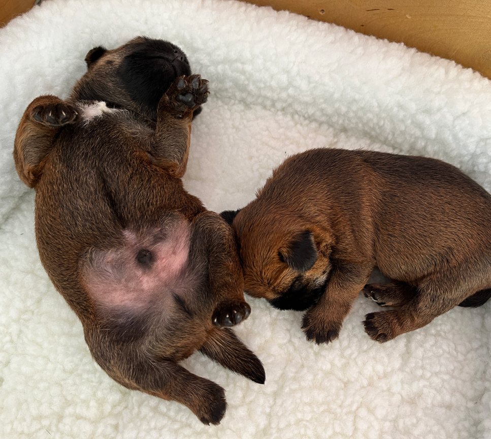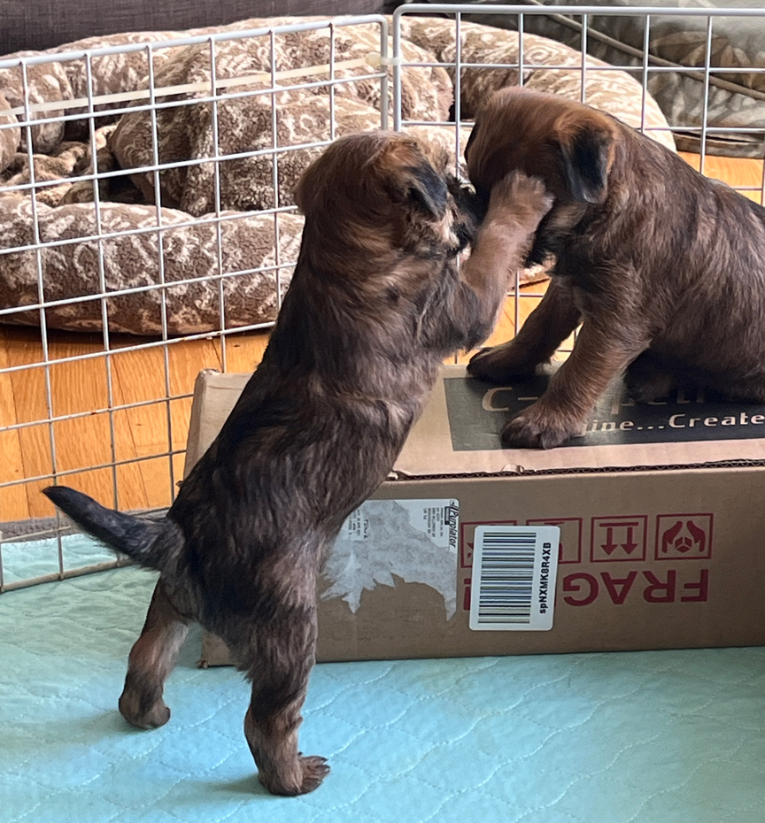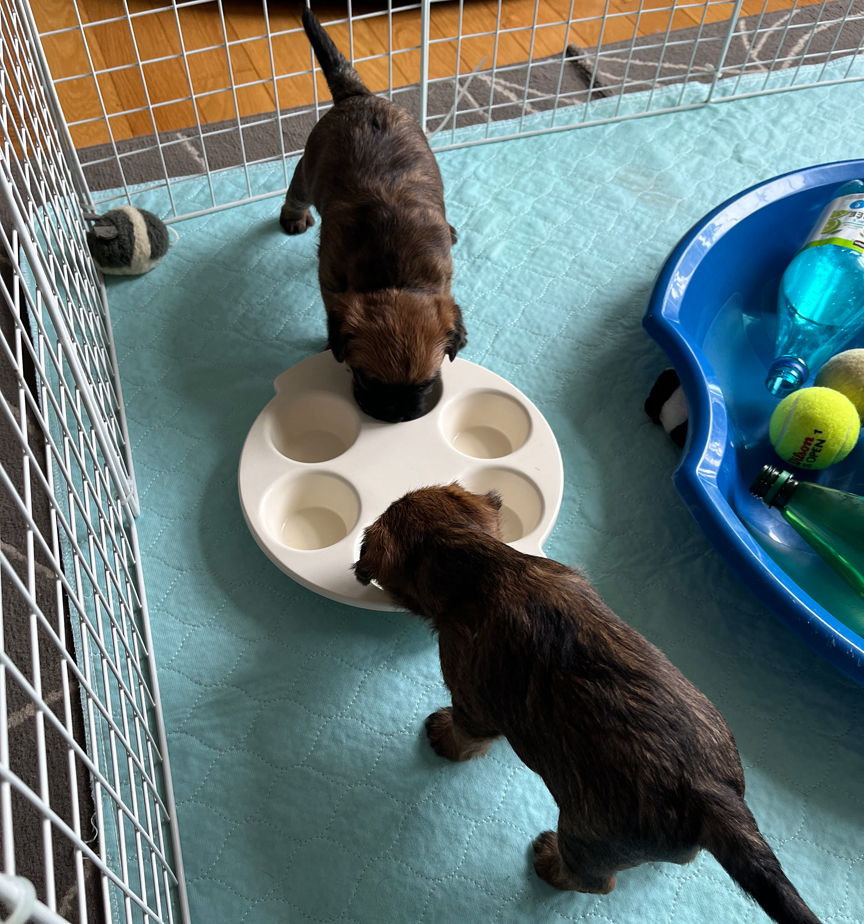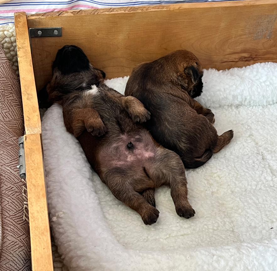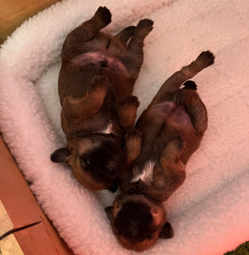 They have been CKC Registered and are formally Jansim Speyside Scally Wag (temporary call name Scally) and Jansim Ardbeg Wee Beastie (temporary call name Molly).