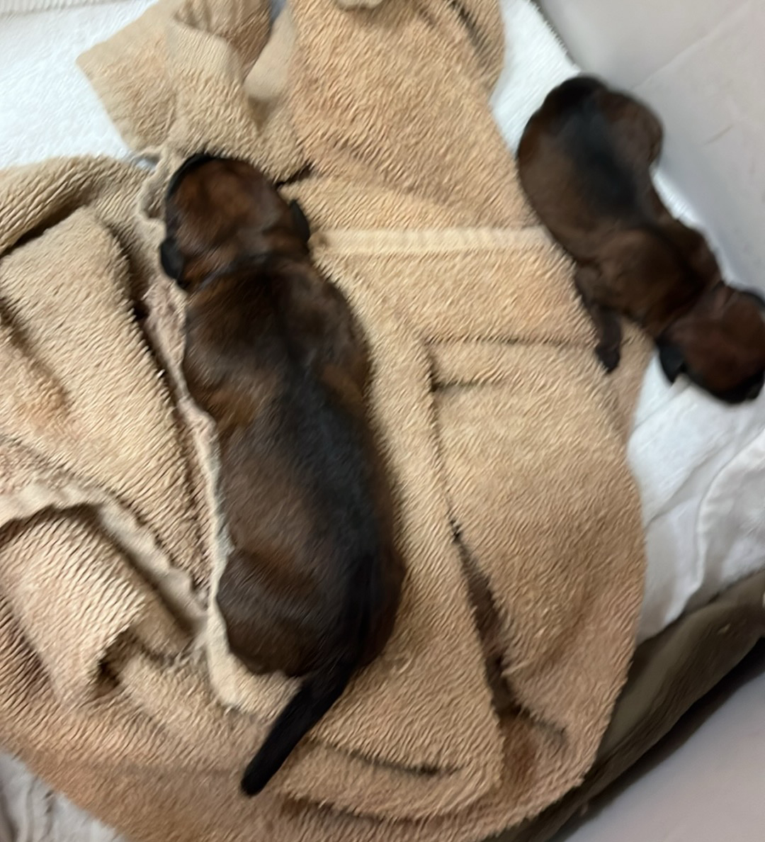 I delivered pup two in a quiet room at the vets and, with help from oxygen out back, she picked up nicely.